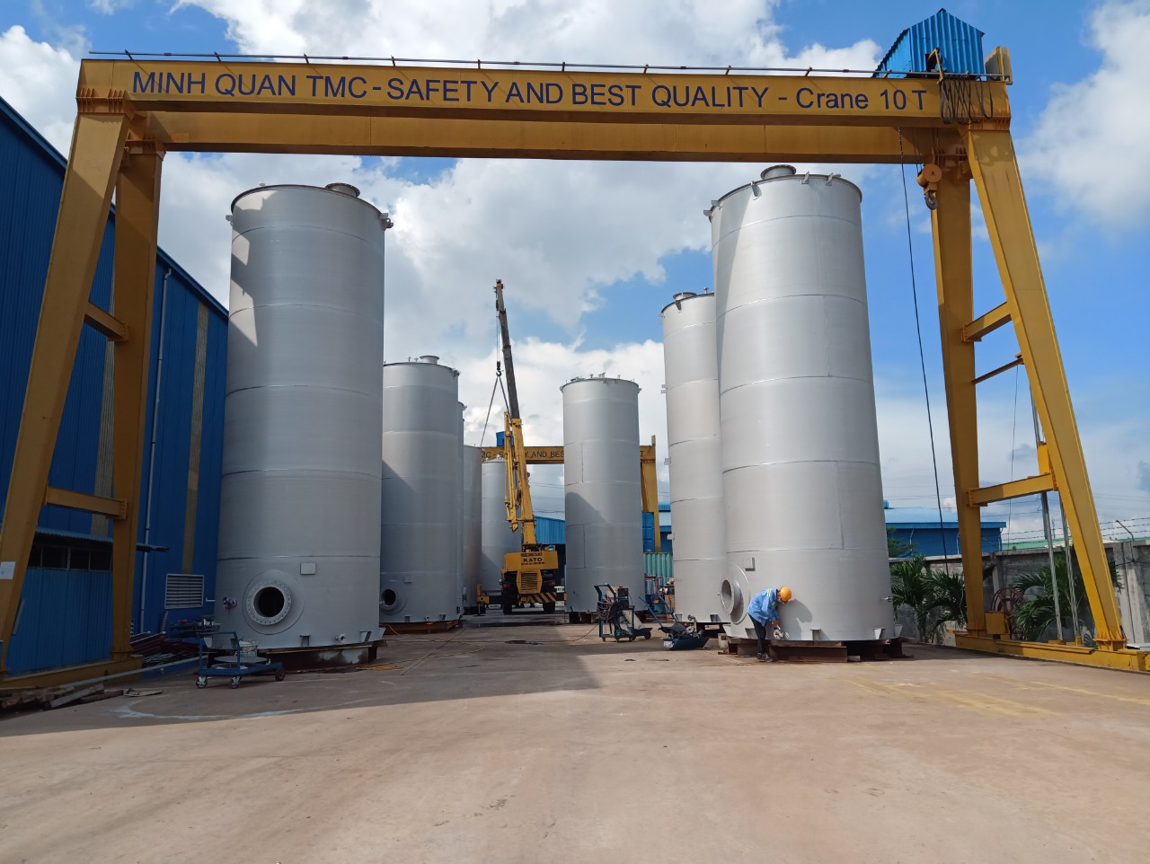 Minh Quân TMC gia công và lắp đặt hệ thống bồn chứa, Silos, Hoppers chứa hạt gỗ, Ống khói và bồn nước cứu hỏa cho dự án.